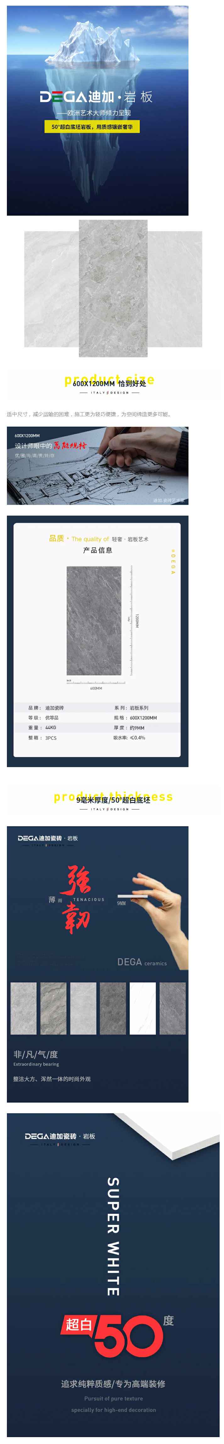 新品速递 | 600x1200MM规格50°超白底坯岩板